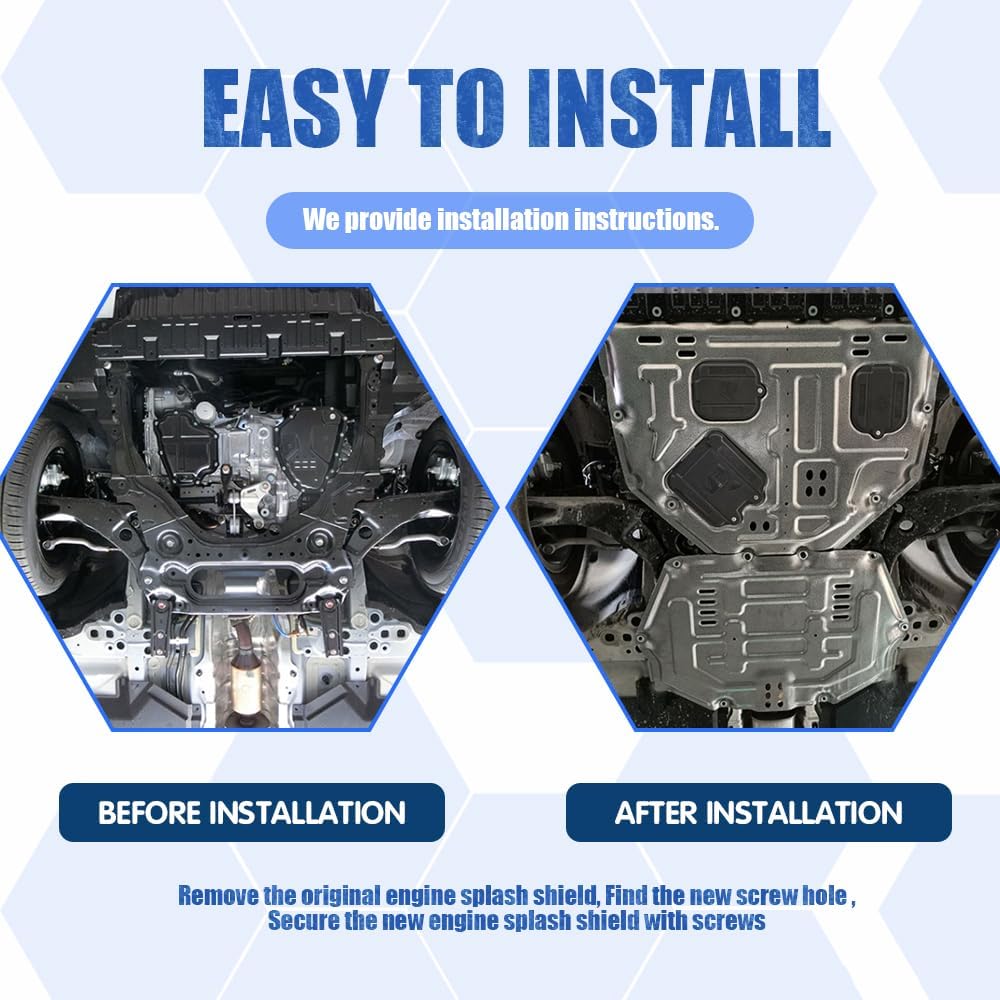 Engine Splash Shield Fit For Sentra 2020 2021 2022 2023 2024 it is hard and wear resistant, extending the service life of your car engine. Adopting a new design with reserved maintenance ports, The engine splash shield does not require disassembly, making it easy to maintain the engine oil. this heavy duty splash shields can effectively protect engine .Not afraid of the decay of rain and snow, not afraid of the impact of flying sand and stones.