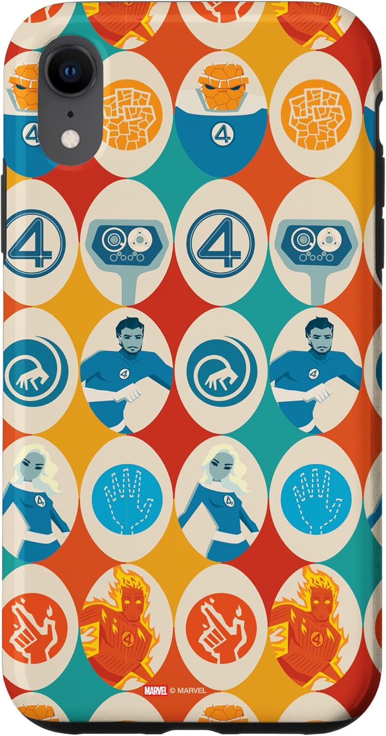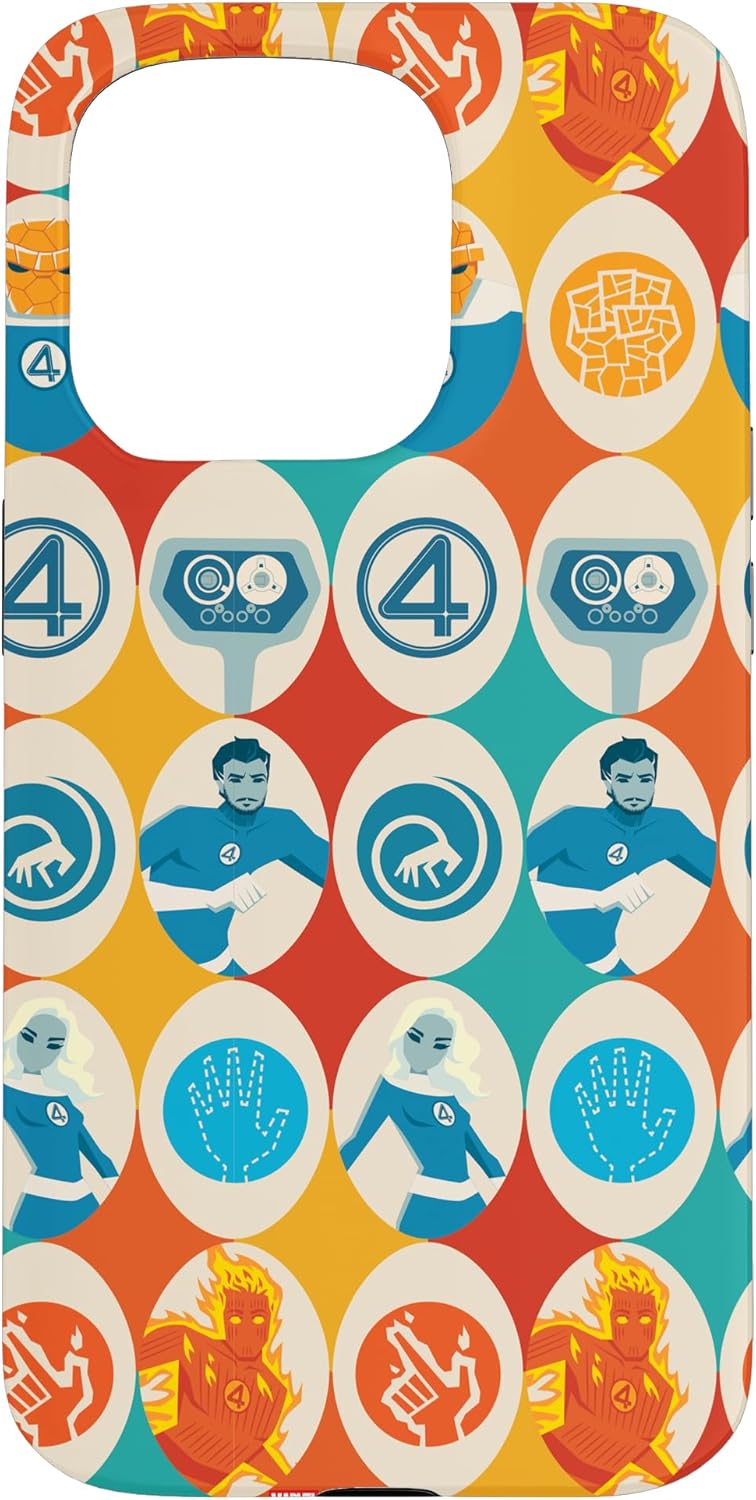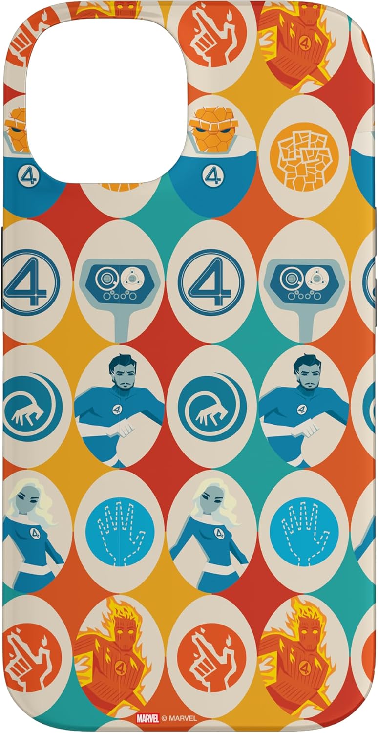 Fantastic Four Superheroes design. Protect your iPhone cell phone with this official phone case from Marvel Studios' blockbuster new movie "The Fantastic Four: First Steps", featuring a colorful, retro-style pattern of illustrations and icons representing Reed Richards -- Mister Fantastic, Sue Storm -- the Invisible Woman, Johnny Storm -- the Human Torch, Ben Grimm -- the Thing, and H.E.R.B.I.E., along with the classic "4" symbol. It’s a perfect gift for a Marvel Super Heroes, MCU, or Fantastic Four fan! Available for the following iPhone models: iPhone 16, iPhone 16 Plus, iPhone 16 Pro, iPhone 16 Pro Max, iPhone 15, iPhone 15 Pro, iPhone 15 Pro Max, iPhone 15 Plus, iPhone 14, iPhone 14 Plus, iPhone 14 Pro, iPhone 14 Pro Max, iPhone 13, iPhone 13 Pro, iPhone 13 Pro Max, iPhone SE (2020), iPhone 7, iPhone 8, iPhone 11, iPhone 11 Pro, iPhone 11 Pro Max, iPhone 12/12 Pro, iPhone 12 Mini, iPhone 12 Pro Max, iPhone X/XS, iPhone XS Max, iPhone XR, iPhone 7/8, iPhone 7 Plus/8 Plus.