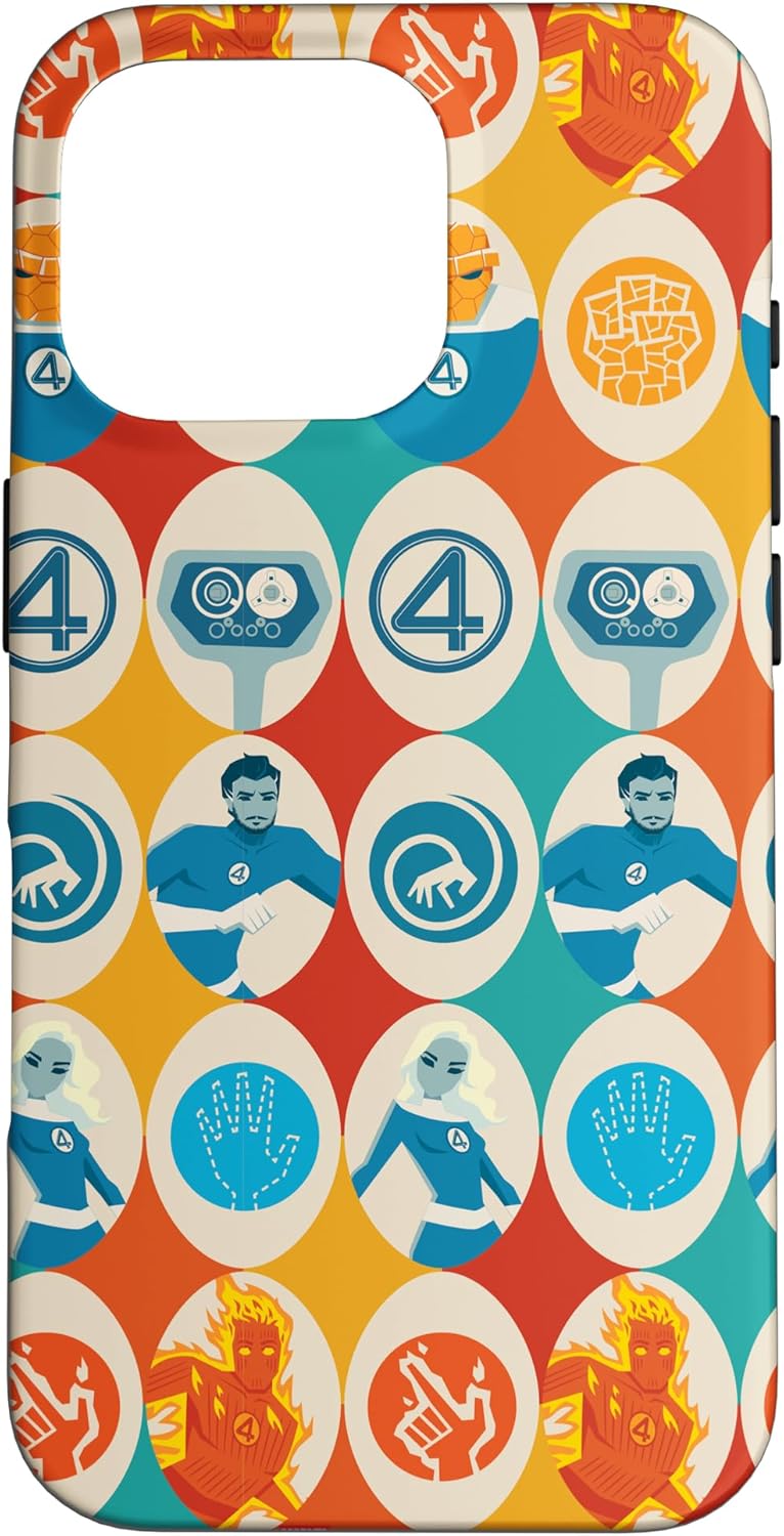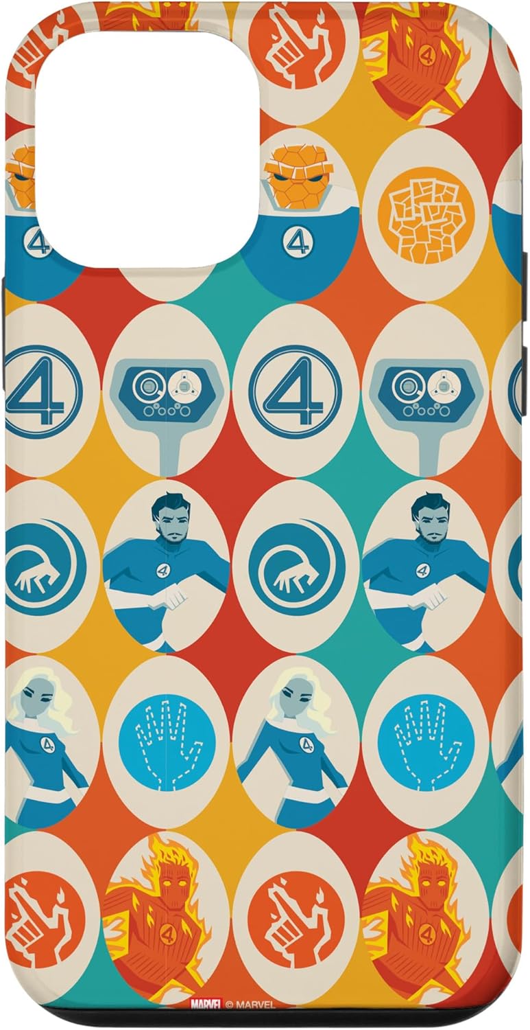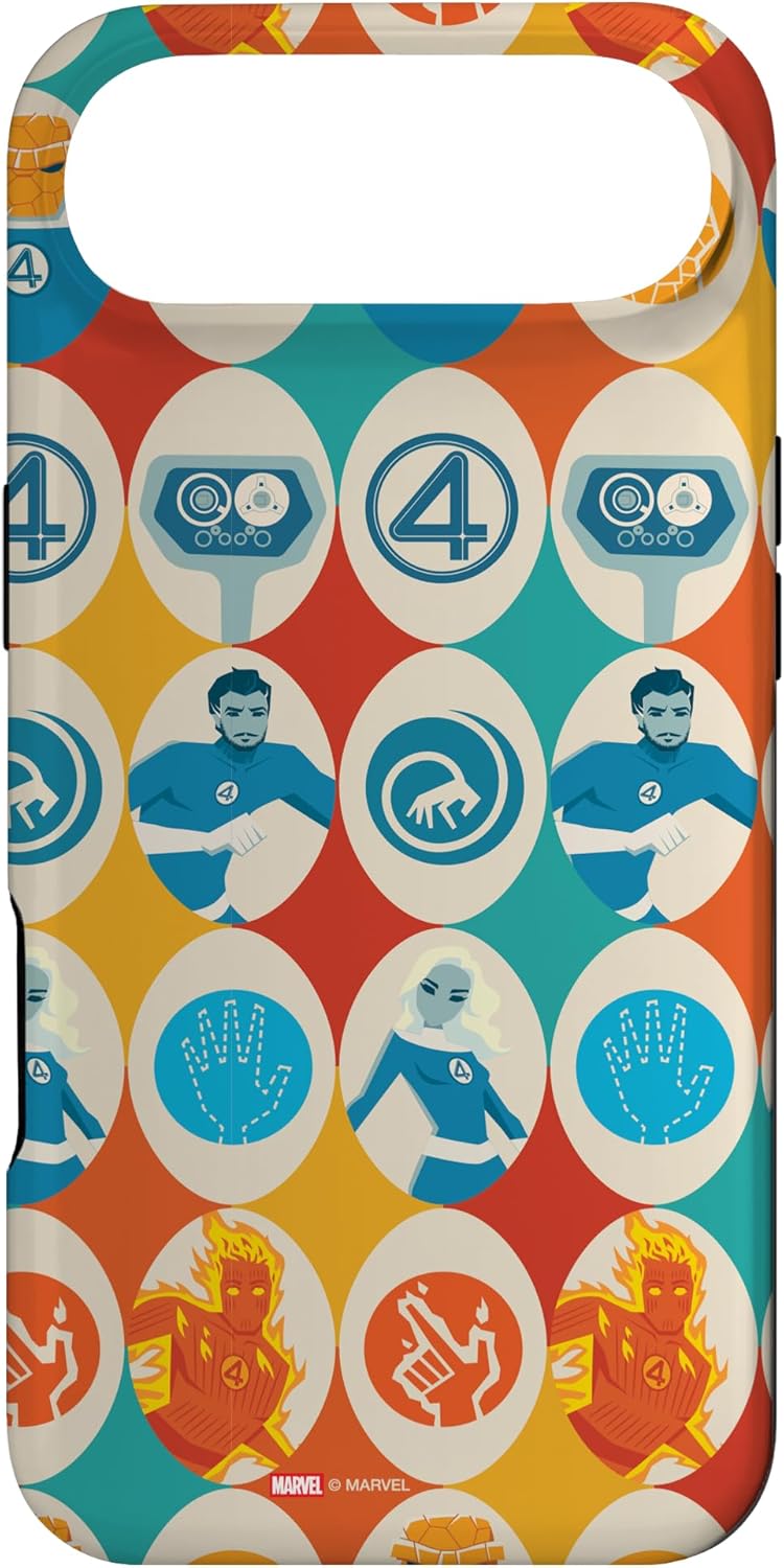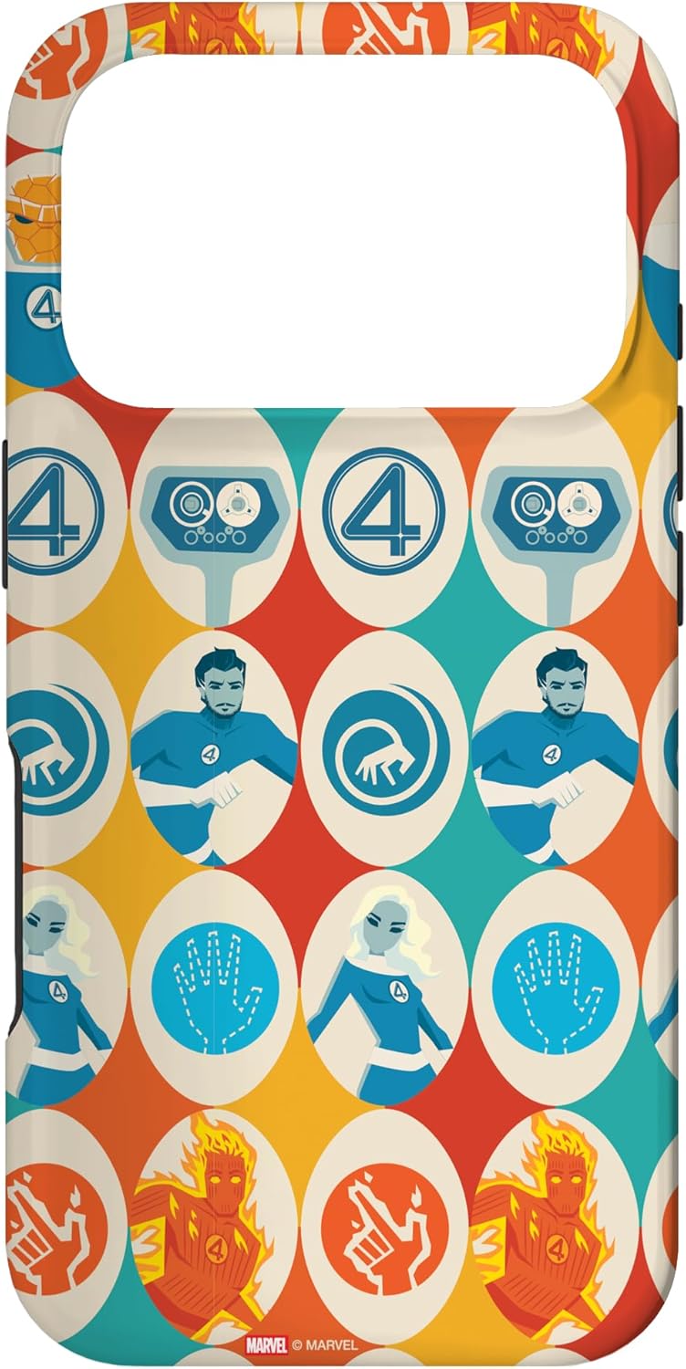 Fantastic Four Superheroes design. Protect your iPhone cell phone with this official phone case from Marvel Studios' blockbuster new movie "The Fantastic Four: First Steps", featuring a colorful, retro-style pattern of illustrations and icons representing Reed Richards -- Mister Fantastic, Sue Storm -- the Invisible Woman, Johnny Storm -- the Human Torch, Ben Grimm -- the Thing, and H.E.R.B.I.E., along with the classic "4" symbol. It’s a perfect gift for a Marvel Super Heroes, MCU, or Fantastic Four fan! Available for the following iPhone models: iPhone 16, iPhone 16 Plus, iPhone 16 Pro, iPhone 16 Pro Max, iPhone 15, iPhone 15 Pro, iPhone 15 Pro Max, iPhone 15 Plus, iPhone 14, iPhone 14 Plus, iPhone 14 Pro, iPhone 14 Pro Max, iPhone 13, iPhone 13 Pro, iPhone 13 Pro Max, iPhone SE (2020), iPhone 7, iPhone 8, iPhone 11, iPhone 11 Pro, iPhone 11 Pro Max, iPhone 12/12 Pro, iPhone 12 Mini, iPhone 12 Pro Max, iPhone X/XS, iPhone XS Max, iPhone XR, iPhone 7/8, iPhone 7 Plus/8 Plus.