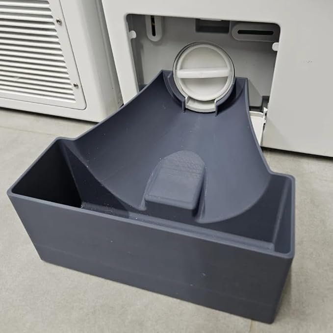 This practical collection tray fits perfectly beneath the pump access panel, catching any water that may escape during pump filter cleaning or maintenance. The thoughtfully engineered design allows for easy insertion without the hassle of removing the machine's hood or pump cover, saving you time and effort. The durable gray pan features a generous capacity to prevent overflow and spills on your floor. Its low-profile design maintains stability while effectively collecting water, making routine maintenance tasks cleaner and more efficient. This essential accessory helps protect your flooring and simplifies the pump cleaning process, ensuring a tidier laundry space.