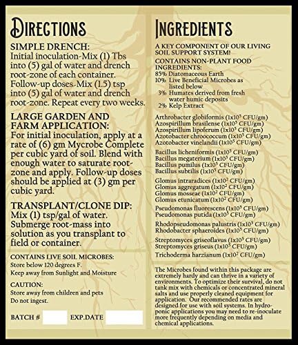 ROOTWISE MYCROBE COMPLETE is "A diverse inoculum of Beneficial Microbes and Mycorrhizae which establish soil-to-root relationships that may assist nutrient uptake, pathogen resistance, and overall plant vigor." Improving nutrient availability and plant health through active soil biology is achieved through balance. Establishing the ideal symbiotic relationship between our crop’s roots and the soil relies on a diverse population of bacteria and fungi. Each unique microbial function group is responsible for specific duties that trigger a chain reaction resulting in enzymatic exchange, metabolite production, and efficient uptake of nutrients. The culmination of this process results in our crop’s ability to achieve maximum genetic potential. How is this accomplished? Most of us are familiar with the principles of balancing nutrients within our soils through fertilization and amending. The same method is applied to biological inputs. Consistent, balanced doses have the greatest benefit. As always, heavy doses of any one input, whether it be a macronutrient or single microbe, can cause an imbalance somewhere in the processes of overall plant health. Employing full-spectrum biology is an invaluable tool for managing your living soil systems. This approach is the foundation for the microbial populations found in Rootwise Mycrobe Complete. Carefully chosen to achieve a balanced exchange between plant and soil, multiple species from each function group are present in agricultural strength populations. This inoculant works equally well for jump starting biological actions in newly built soil mixes as it does maintaining ongoing populations in well established soils. Helpful tips: Our dilution rates make a very concentrated solution. Apply efficiently. We recommend consistent follow-up doses after initial inoculation to encourage ideal nutrient cycling. After initial mixing, allow sufficient time (1/2 hour) for microbes to come out of dormancy before applying.