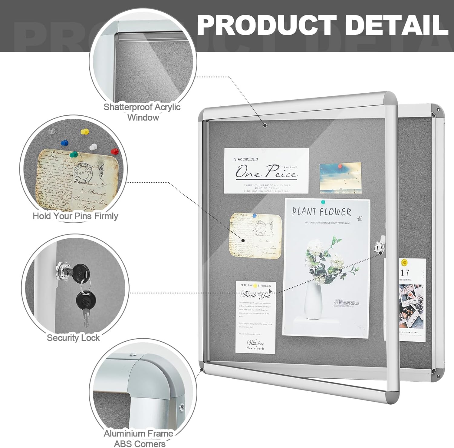 Features: Easy to install: Coming with fixing and instruction is for easy installation on most walls. The aluminum framed bulletin board can be mounted vertically or horizontally. For outdoor use, we suggest installing beneath an overhang or in a semi enclosed space to increase product life. Versatile usage: The aluminum framed notice board is suitable for classroom notes board, school notice board, office public message bulletin, photo display boards, community bulletin board and more. Warmly remind: To clean the acrylic cover surface, use water or mild soapy water. Do not use any glass cleaning liquid solutions as they may cause permanent surface breakage. Specifications: Size of the notice board: 36 x 24 Inch Package includes: 1 x Board 12 x Nails 1 x Lock 2 x Keys 4 x Screws Notes: Manual measurement, please allow slight errors on size. The color may exist a slight difference due to different screen displays. Pointed and small parts included, please keep away from little kids.